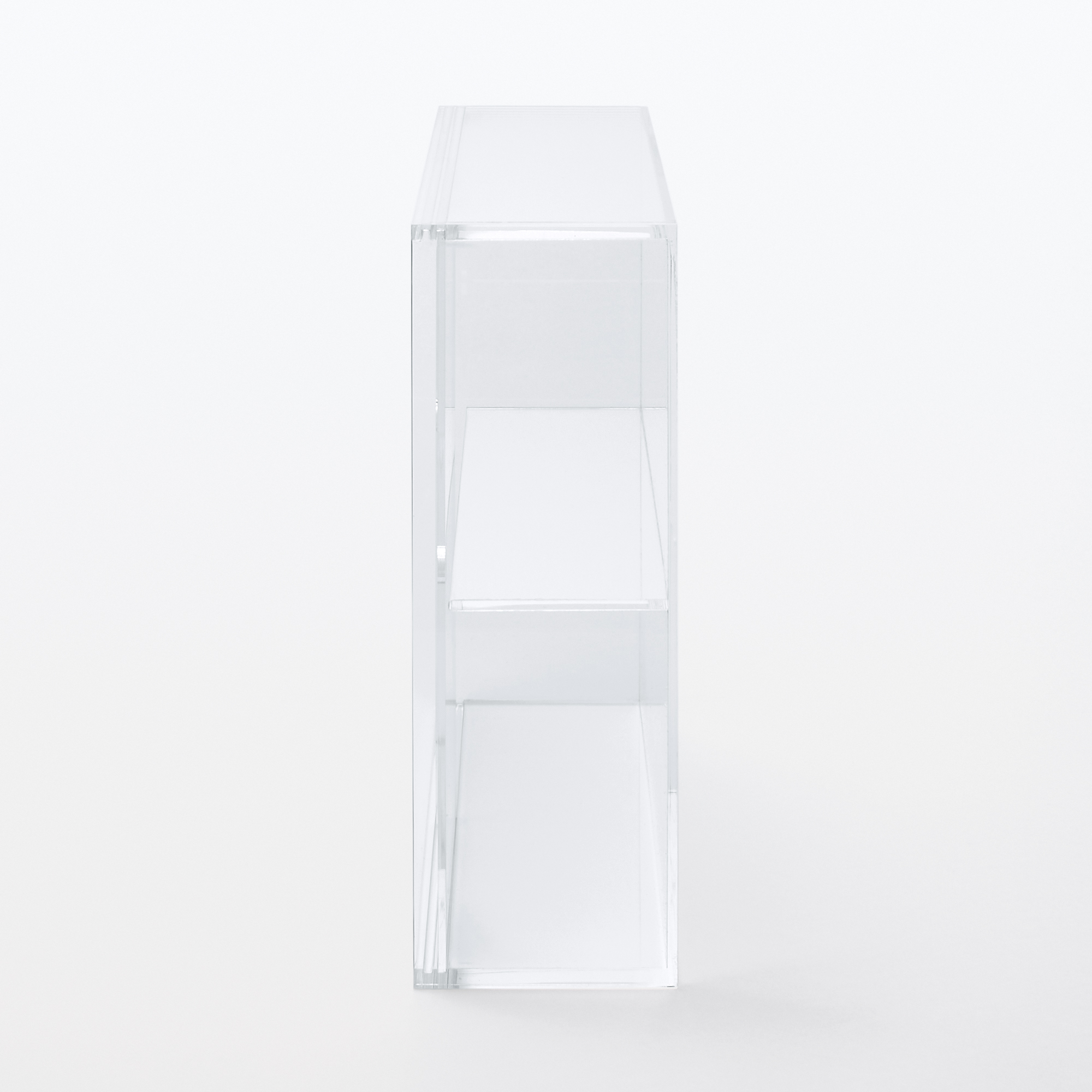 Made of transparent acrylic materials, you can easily identify your belongings inside the cases. It can be easily pieced together and enables you to arrange your small accessories such as stationary, electronics or jewellery neatly. MUJI newly launched more than 20 styles of Acrylic Storage Items this summer, totalling to more than 60 different items including Drawer Box, Storage Case, Stand for Jewellery, Display Case, Document Stand and Divider Stand, bringing versatility to customers for building up their own desktop storage system.