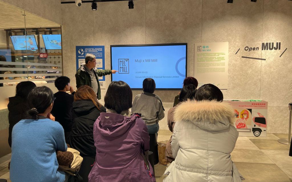 We invited customers to explore the current state of waste management and recycling in Hong Kong. The display will introduce the sources of recycled materials and their transformation processes, including the steps of paper recycling and the achievements of Mil Mill in recycling paper, thus promoting awareness of environmental issues.