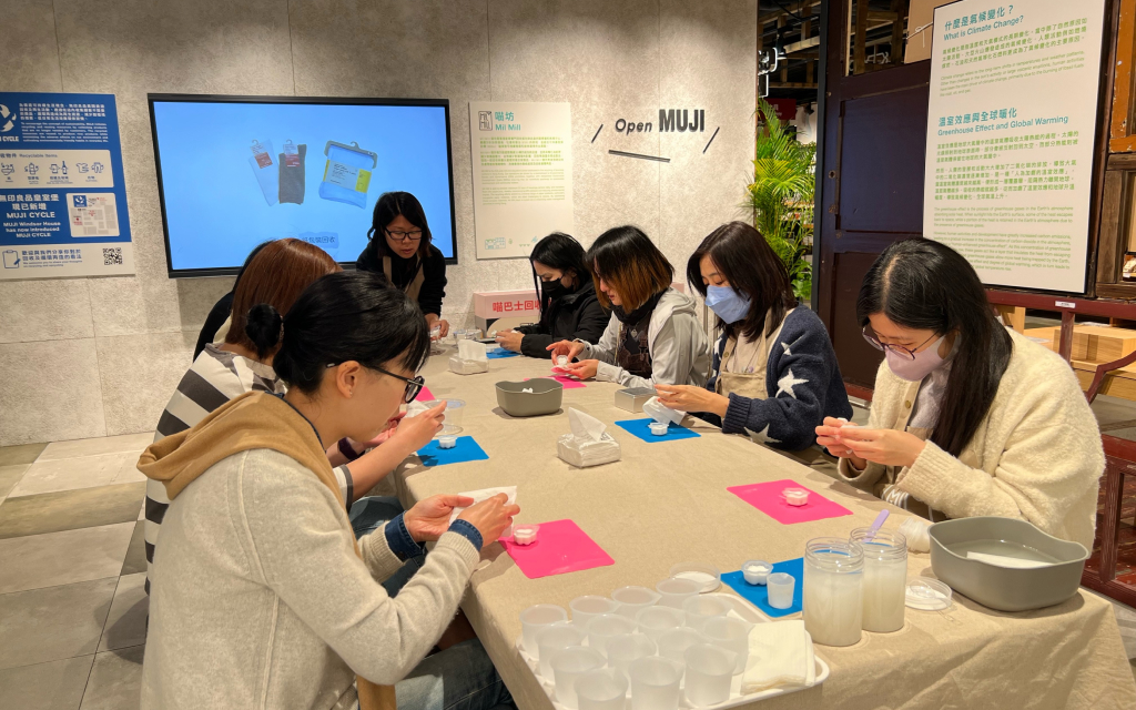 MUJI hosted four sessions of the "Recycled Paper Diffuser Stone Workshop," where participants will use materials recycled by Mil Mill to create diffuser stones. During the creative process, they will learn about the sources of recycled materials and their transformation, experiencing the cycle from recycling to reproduction.