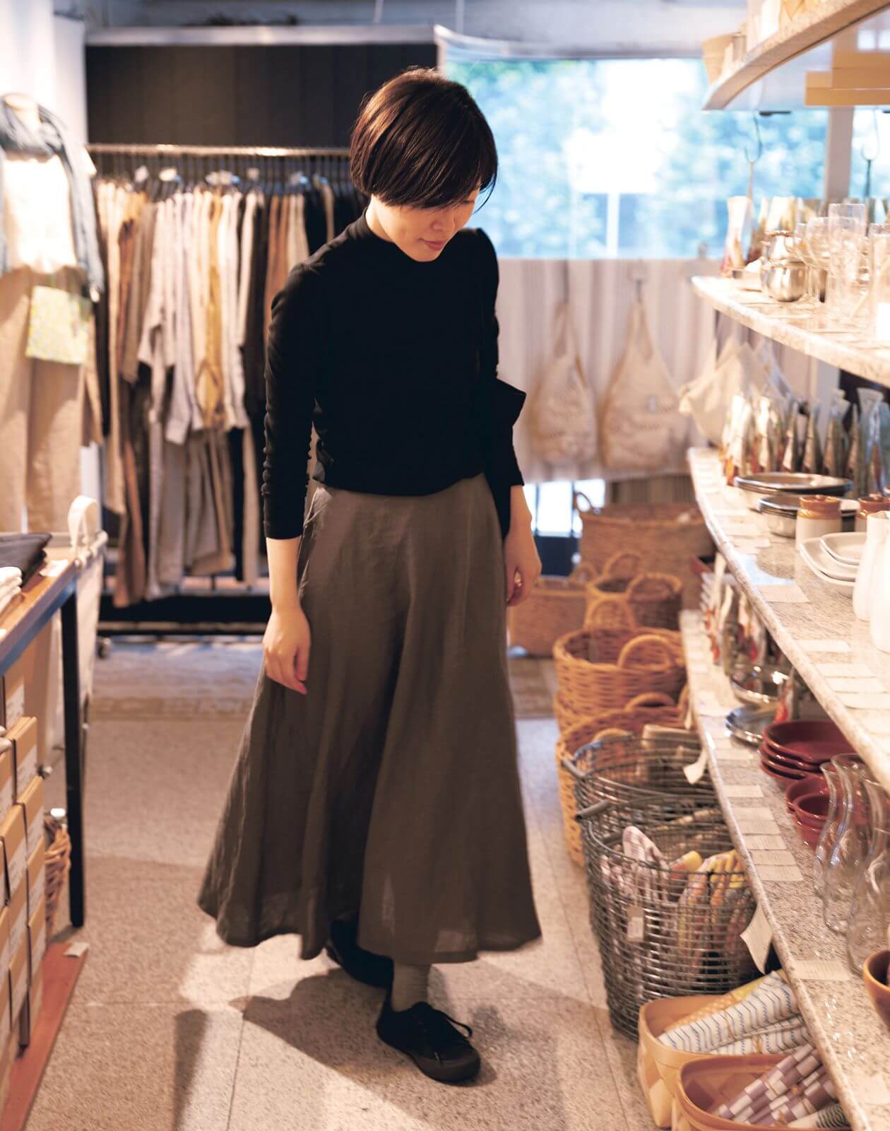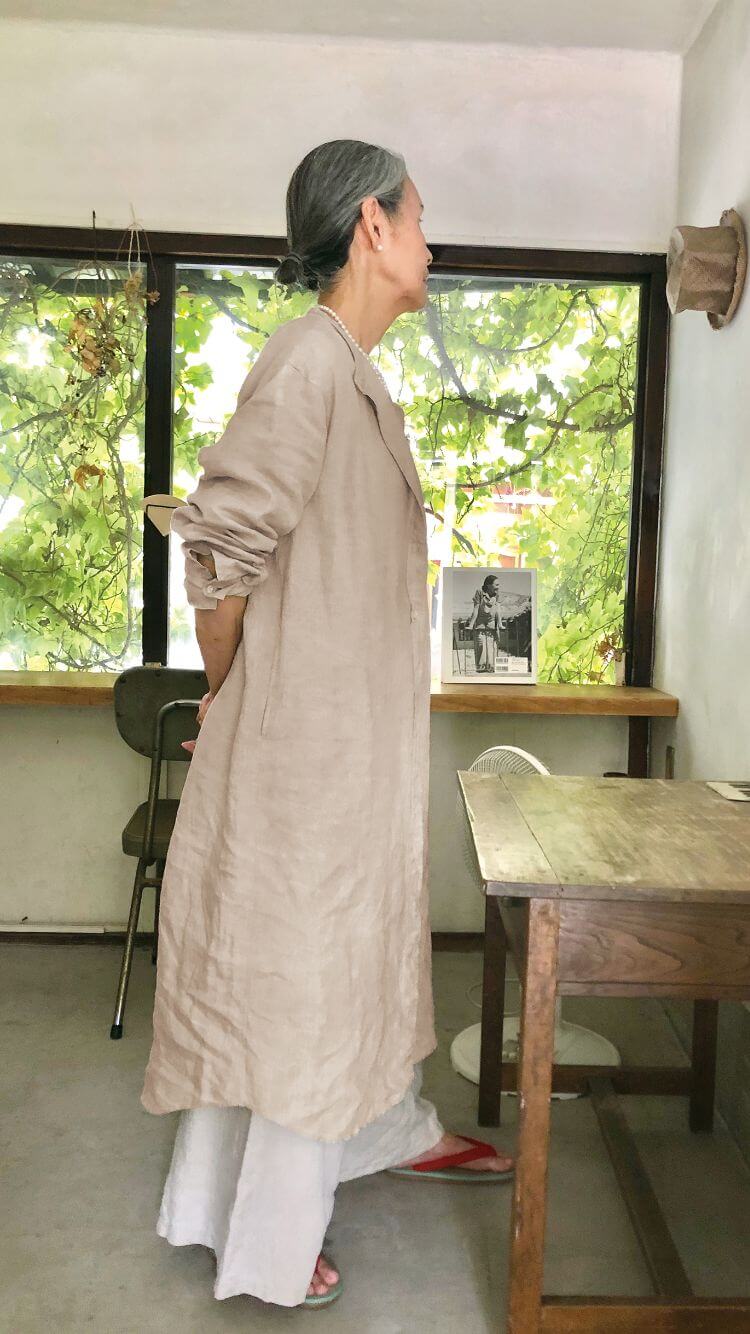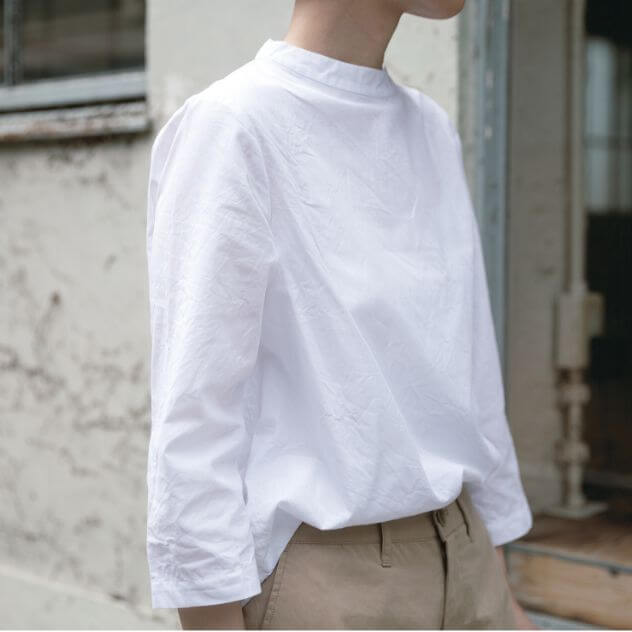寒暖差の大きい環境で育った麻に洗いをかけ、しなやかな肌触りと光沢を引き出しました。また、麻は水に濡れると繊維の強度が増す性質を持ち、着る、洗うほどにやわらかく深みのある風合いになります。あなたも麻の服をたいせつに育ててみませんか。