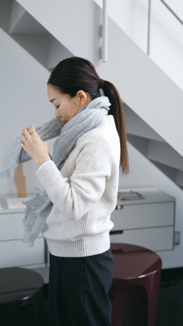 機械を使いながらも人の手でゆっくりと紡いだ糸を使用しています。紡ぐ人や織る人の手加減で、同じ種類や色であっても仕上がりはまちまち。1つ1つが異なる自然な表情を持ち、そんな人の手の跡が見えるところが魅力です。