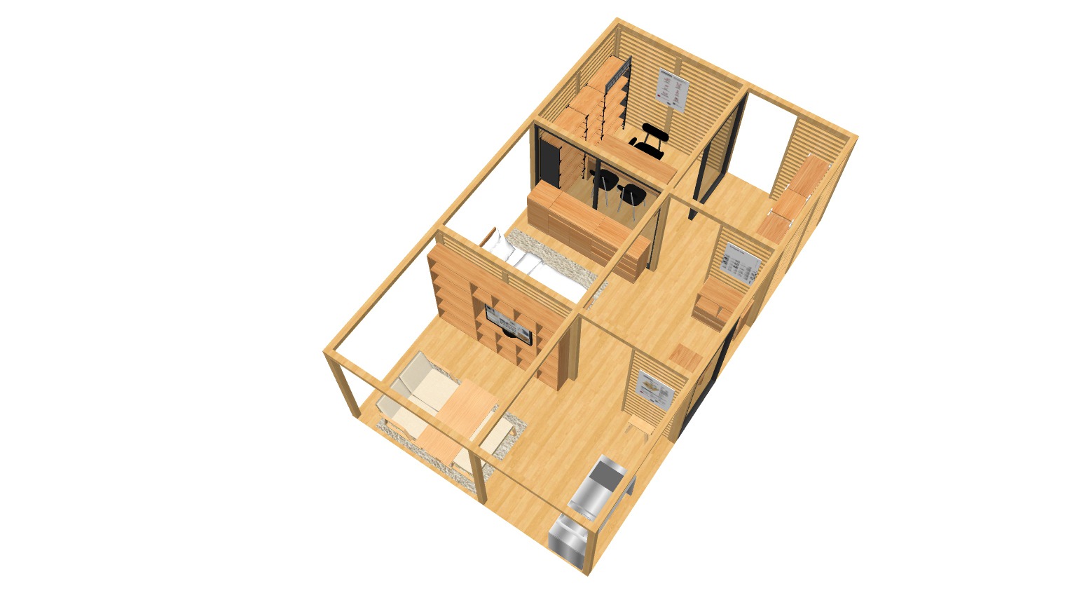 The bedroom is furnished with a double bed and wooden cabinets for storing daily wear and bed linens. The rustic and natural feel of wooden furniture adds to the harmony and comfort of the bedroom, helping you to relax and enhance sleep quality.