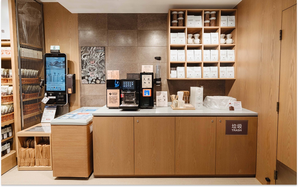 Located at the store's entrance, the “COFFEE STAND & Bakery” features a distinctive wall crafted from recycled coffee grounds, highlighting sustainable materials and natural textures. This vibrant space offers expertly handcrafted coffee, freshly baked light bites, and four new smoothie flavors: mango, strawberry, coconut, and yuzu; blended with either creamy milk or robust coffee bases, delivering a delightful fusion of vibrant fruit flavors and smooth, velvety textures. While savoring these meticulously crafted beverages and treats, customers can experience MUJI's commitment to sustainable living. This inviting corner serves as an entry point to MUJI's lifestyle philosophy while underscoring the brand's dedication to environmental excellence.