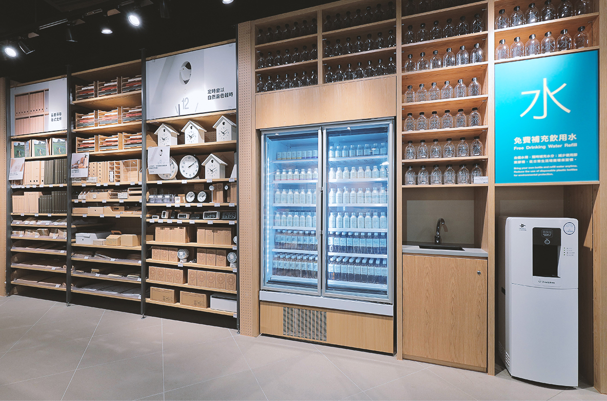 With the natural environment in mind, MUJI Hong Kong introduces the “Water Refill Station” in store, providing free drinking water refill service. Customers can bring their water bottles to refill water. Additionally, a variety of water bottles is available in store, promoting the reduction of single-use plastic bottles and encouraging eco-friendly habits and green living in daily life.