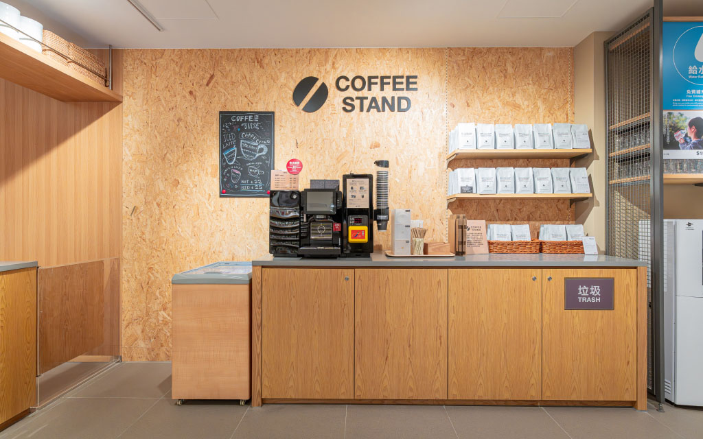 MUJI Cityplaza Store has added a "Water Refill Station" which offers free drinking water. Shoppers can bring their own bottle and refill water at any time. The store also offers various water bottles for sale. This campaign encourages the reduction of single-use plastic bottles and helps customers to cultivate eco-friendly habits in daily life. Additionally, the store features a "COFFEE STAND" with a self-service specialty coffee machine. MUJI uses freshly roasted beans from a local Hong Kong coffee roaster to grind and prepares a variety of hot and cold beverages, filling the air with rich aromas.