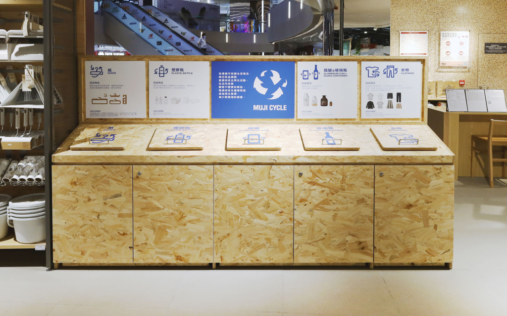 To encourage sustainability, MUJI has first launched the ‘Resources Recycling Collection Counter’ which customers can bring along cleaned recyclable materials including paper, plastic bottles, aluminum cans, glasses and MUJI old clothing to the store for recycling. By reusing the recycled materials to produce new daily life products, we invite our customers to minimize wastage and cultivate the habits of being environmentally friendly from everyday life.