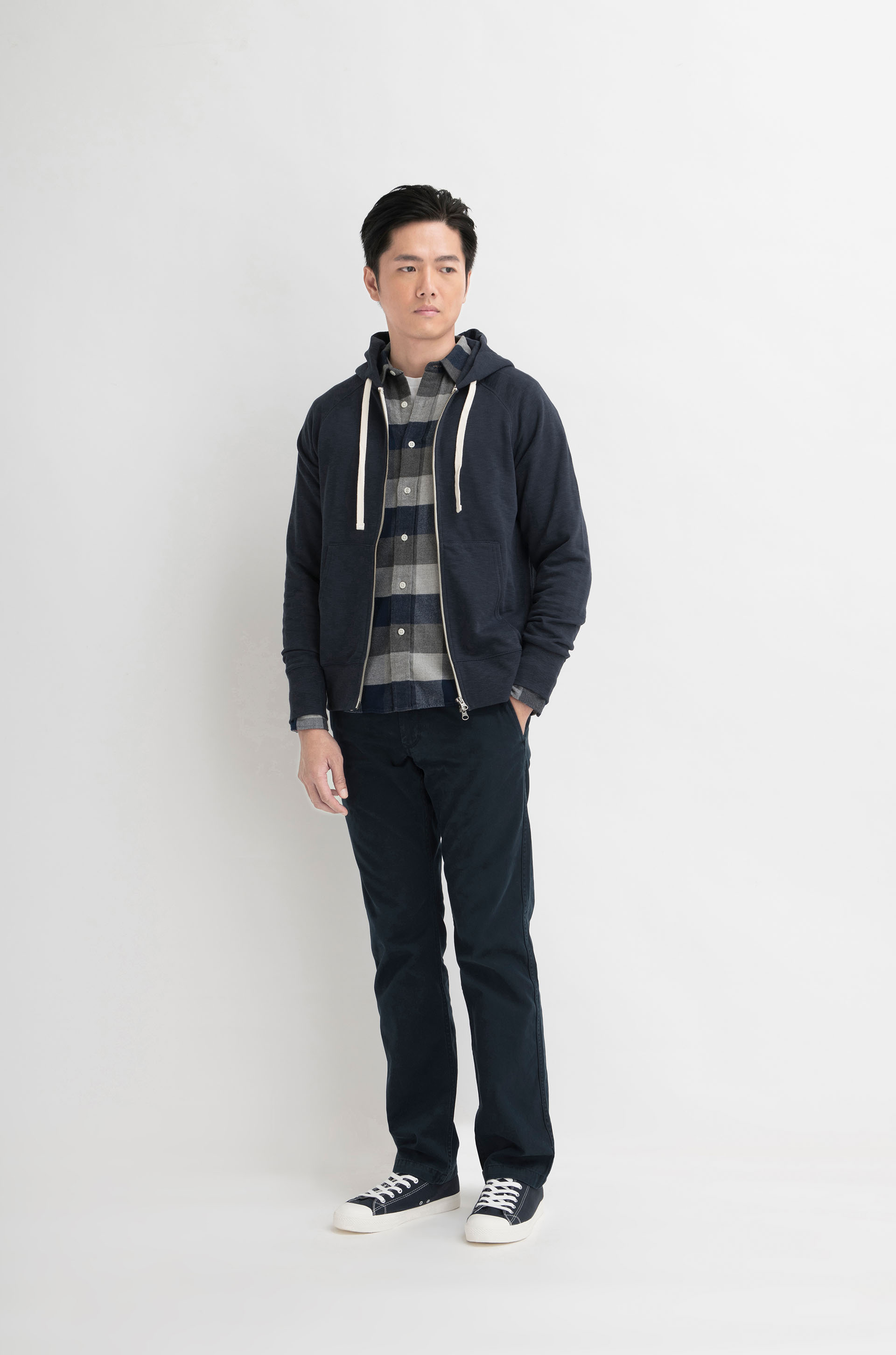 男裝有機棉雙拉鏈外套連帽