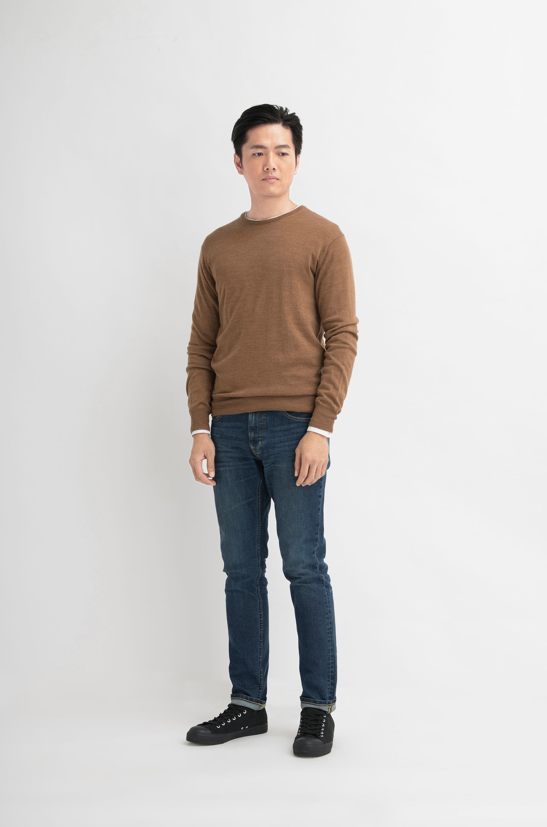 男裝美利奴羊毛圓領套頭針織上衣