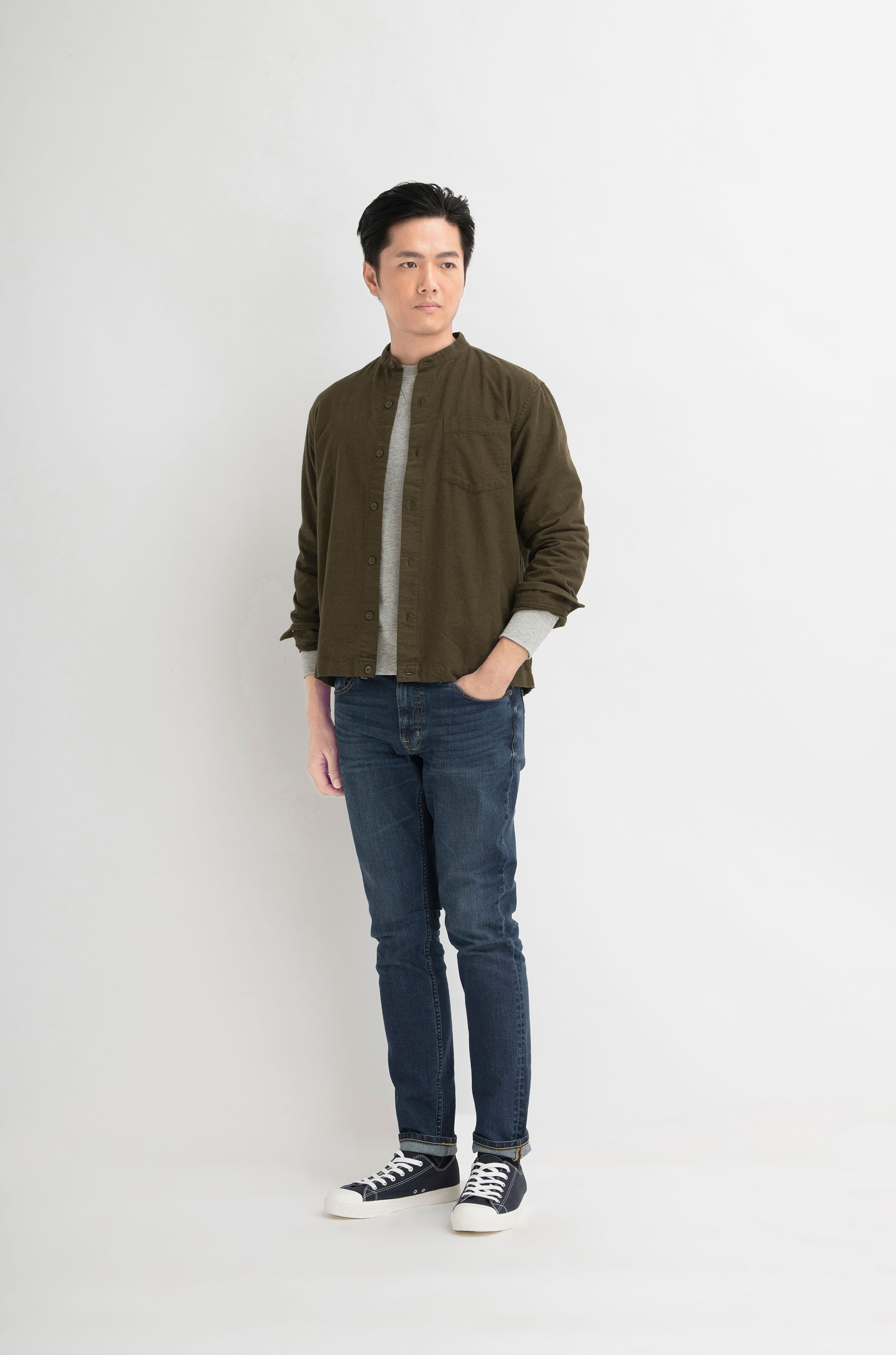 男裝有機棉法蘭絨織企領裇衫
