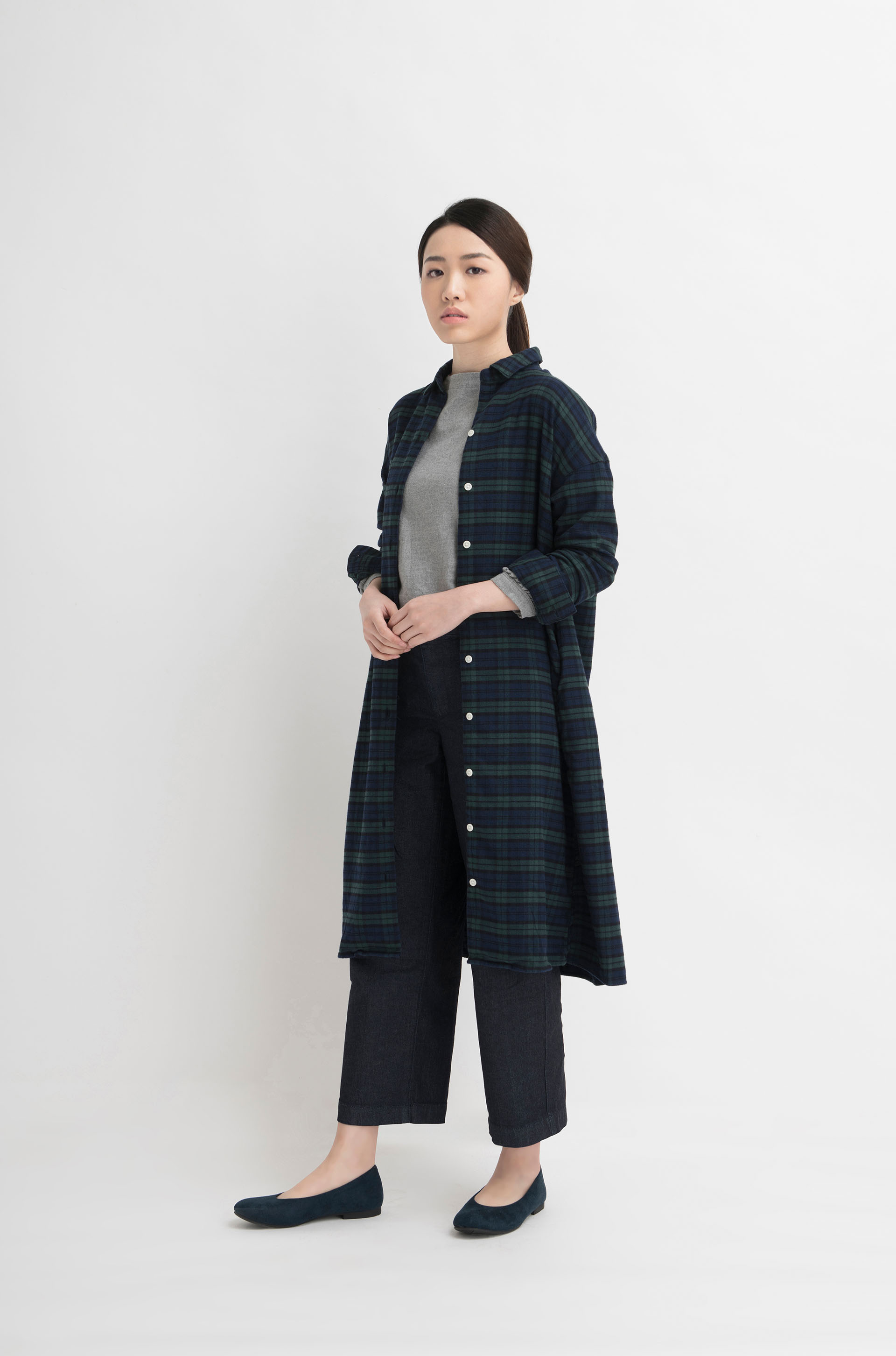 女裝有機棉法蘭絨織長袖裇衫
