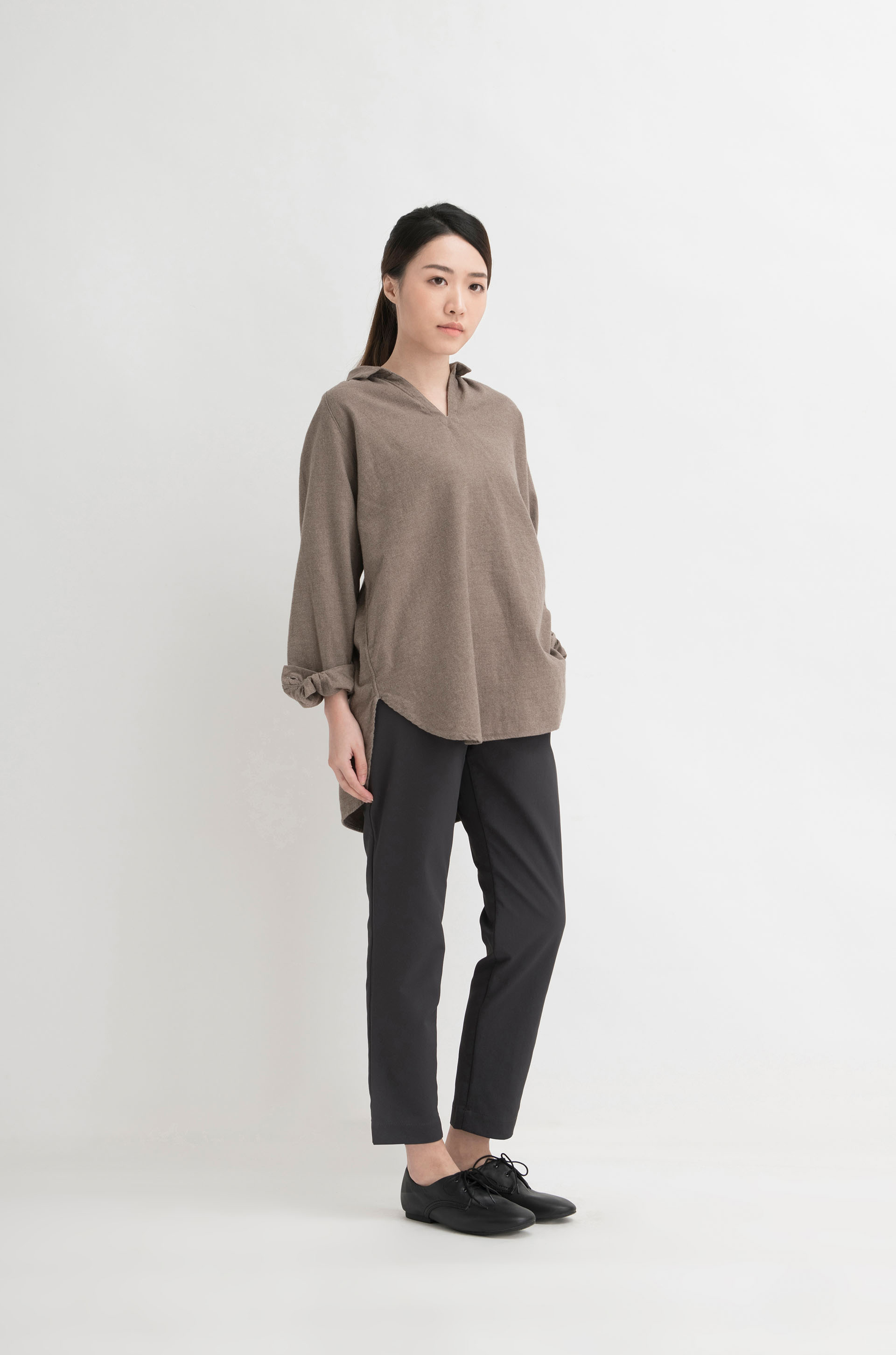 女裝有機棉法蘭絨織套頭長上衣