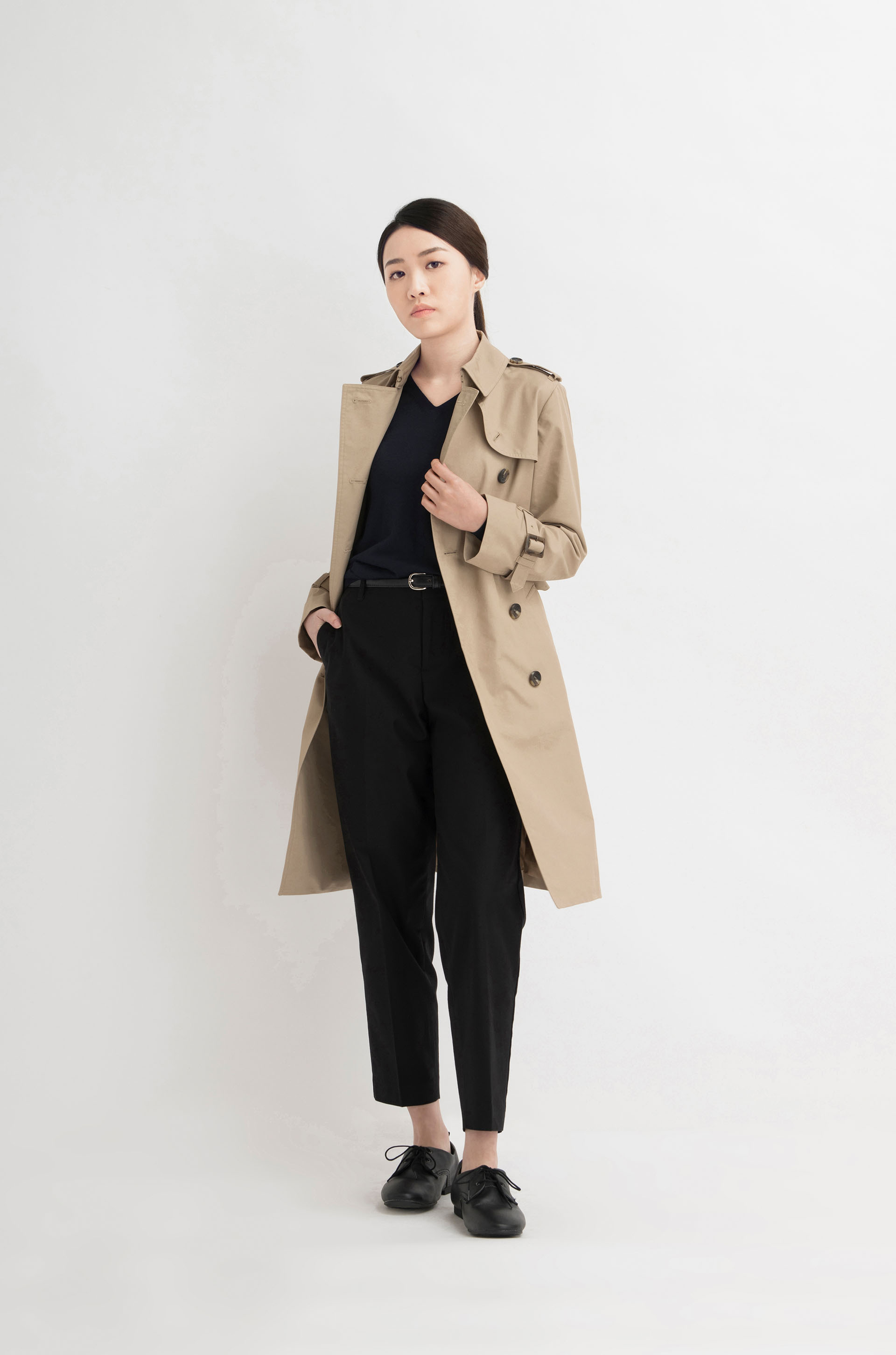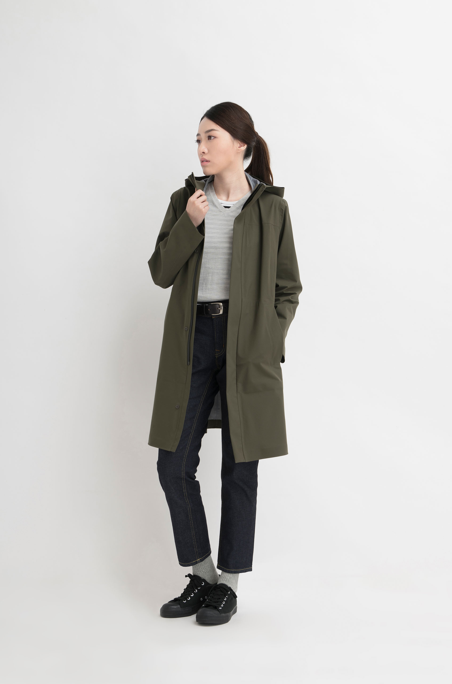 女裝撥水加工長外套連帽