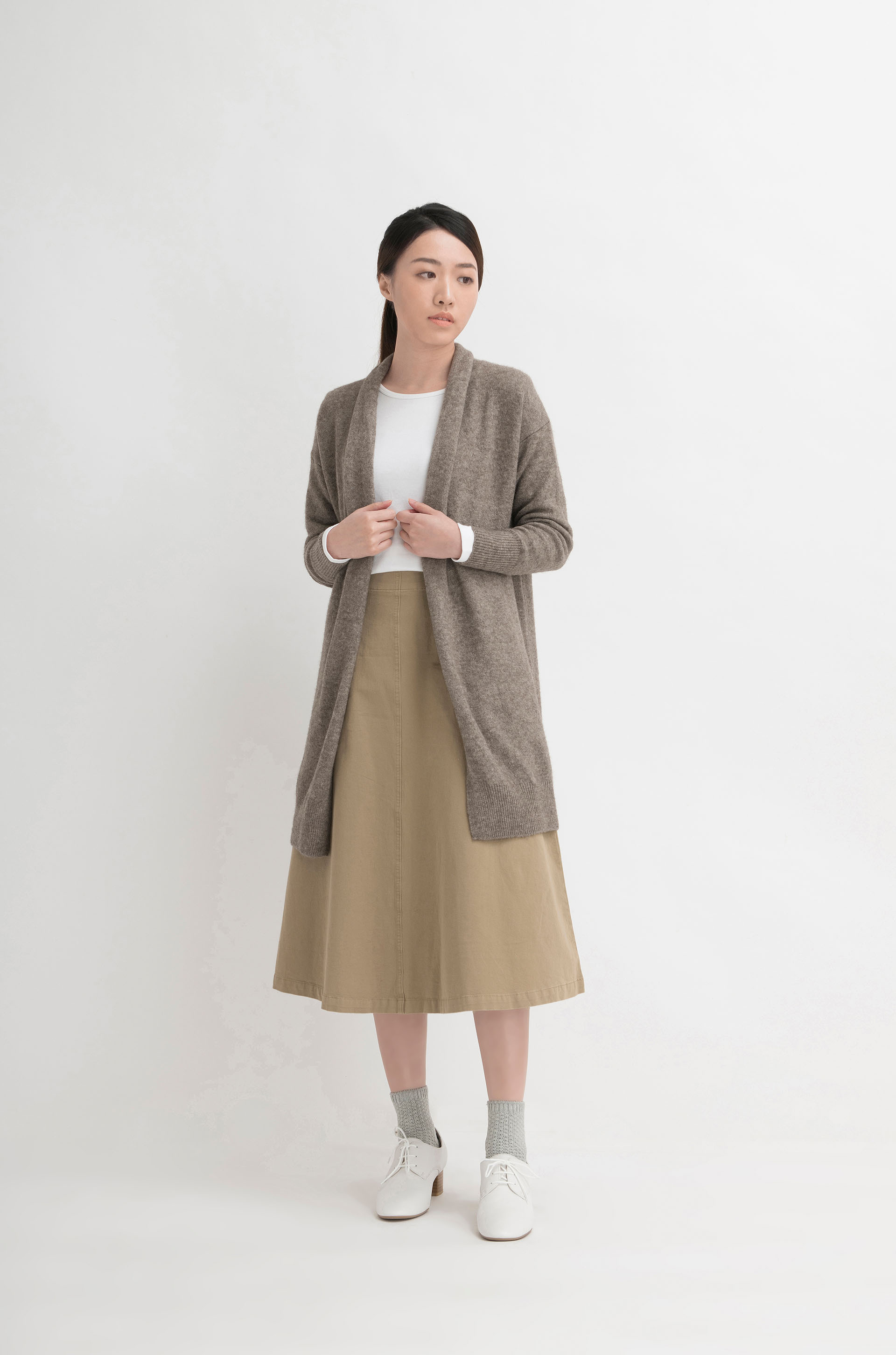 女裝羊毛真絲混紡針織長外套