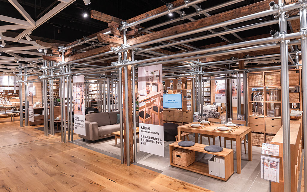 店內設有逾700平方呎的住空間主題展示區,貫徹無印良品自然簡樸、不作多餘裝飾的理念,示範如何有效使用設計簡潔、用途廣泛、富組合性的無印良品家具及收納用品整理生活環境,建立功能完整且收納空間充足的家居,為顧客帶來空間配置靈感,展現良感生活帶來的舒適自在感。