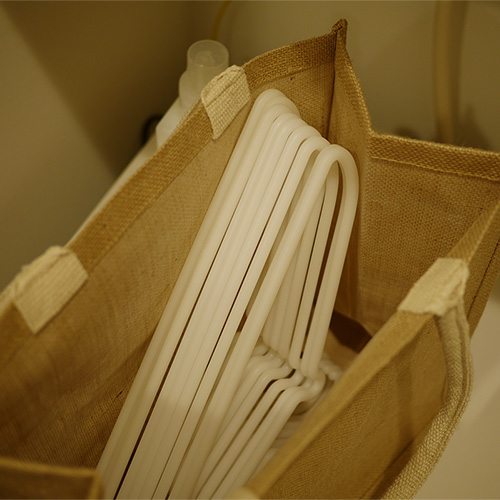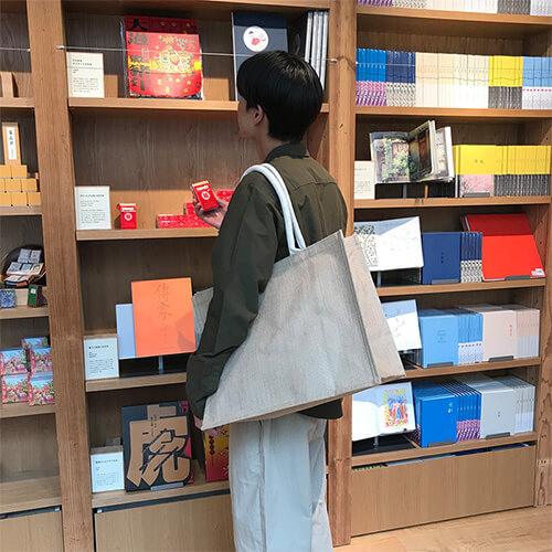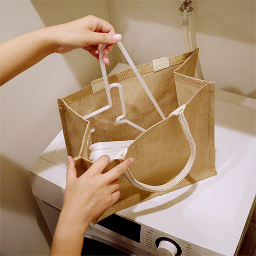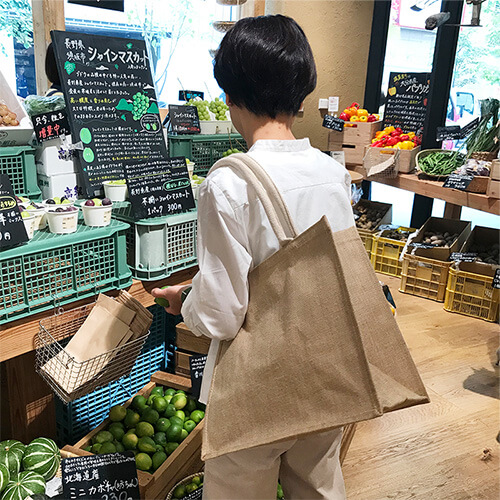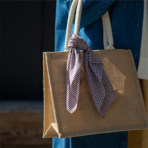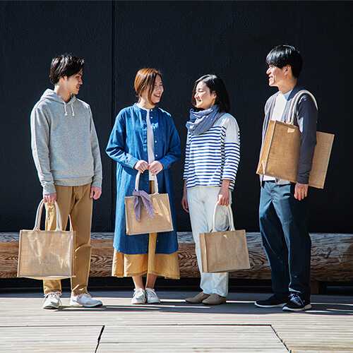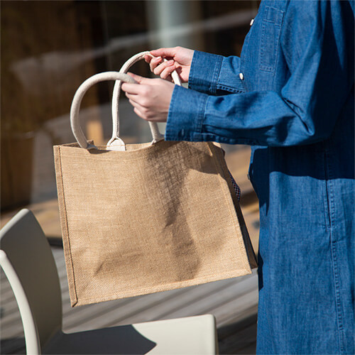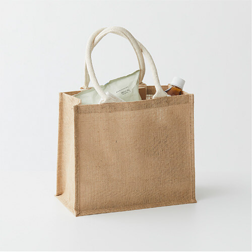 採用黃麻素材製作而成的袋子。備有B5、A4、A3 3種尺寸,除了可以當作袋子使用外,也可用於房間的整理收納。