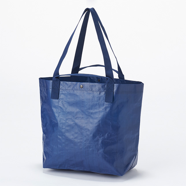 用於製成以常用於建築防風布的素材製成,堅韌耐用,適合等戶外活動時使用適合野餐等戶外活動時使用。雙手挽設計,可按需要使用不同長度;手挽末端附有掛鈎用圈,方便配合S形掛鈎等使用,隨時將手挽袋吊掛於所需位置。