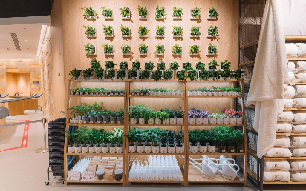 MUJI GREEN以植物融入環境設計,各款花盆呈現出不同形態,設計簡約、容易打理,營造簡約和諧的綠色生活,讓客人時刻感受大自然氣息,整頓心靈。