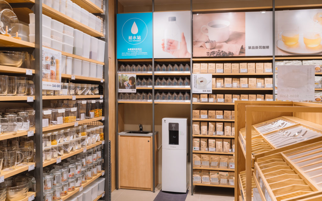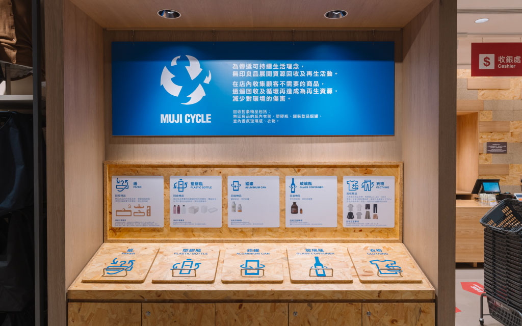 新店亦設有MUJI GREEN、MUJI CYCLE、給水站等商品和服務,鼓勵顧客由日常生活培養環保及關顧環境的習慣。