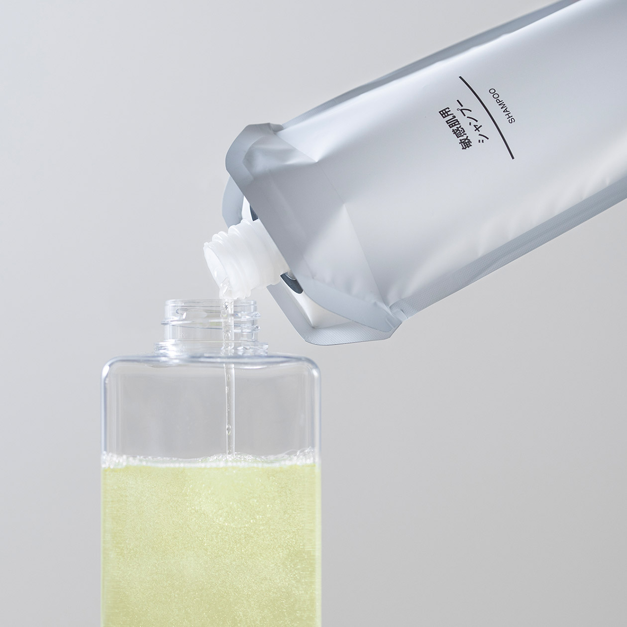 たとえば、シャンプーの容器を使い捨てずに、中身を詰め替えて、くり返し使ってみる。ごみを出さないくらしを、身近にできることから。