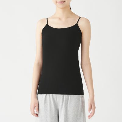 丸編みで縫い目のない筒状に編み立て、縫い代のごろつき感を解消しました。アウターに響きにくいのが特長です。
