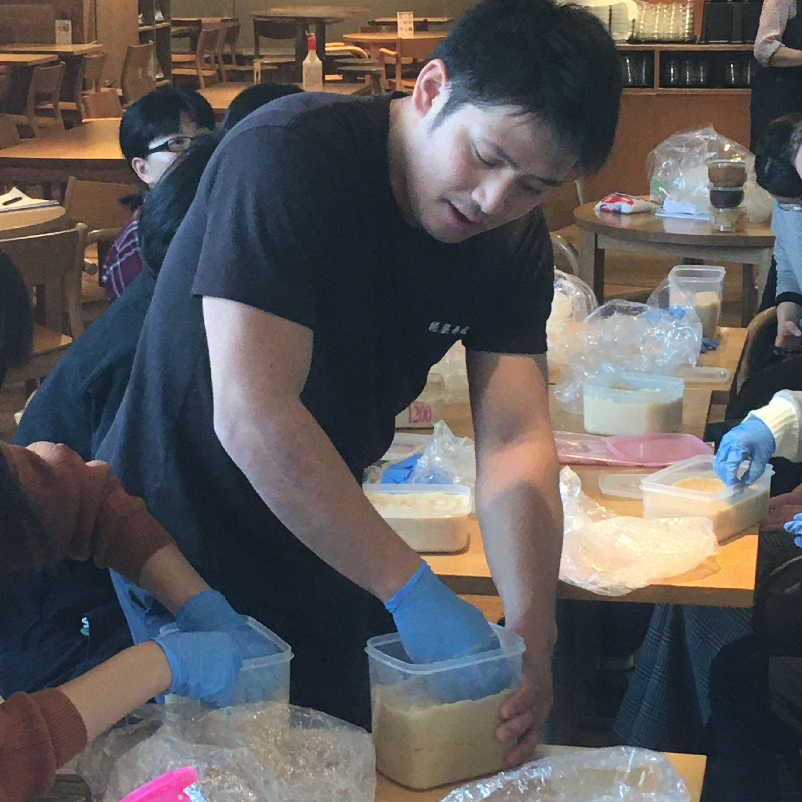 Cafe'&Meal MUJI グランフロント大阪では、12月14日(土)・15日(日)、大阪府堺市の「糀屋 雨風(こうじや あめかぜ)」さんをお迎えし、「味噌づくり教室」を開催しました。