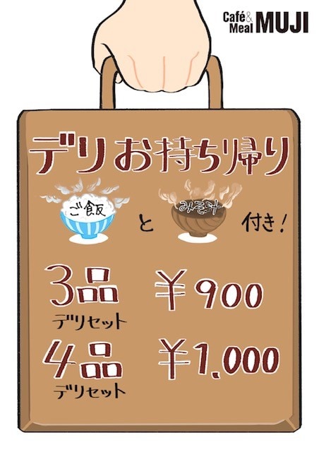 3品デリセット(税込 900円) 4品デリセット(税込 1000円)をお持ち帰りいただけます。