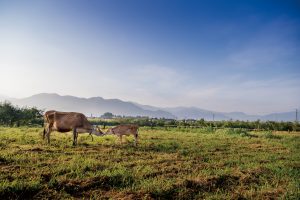 暑い季節、爽やかな牧場で草をはむ牛さんに思いをはせながら