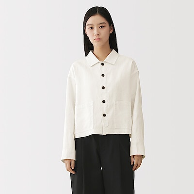 アウターとして着用しているMUJILABOの「太番手リネンシャツ」はデニムパンツと相性抜群で、商品のシルエットを強調しスタイリッシュに見せることができます。