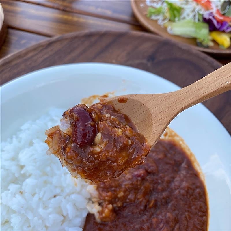 赤いんげん豆にトマトの旨みを生かしたソースを合わせました。炒めたまねぎのコクで味に深みを出した北インドのベジカレーがお手本です。トマトとオニオンの旨みが強いソースにカルダモンやシナモンを加え、香り良く仕上げています。