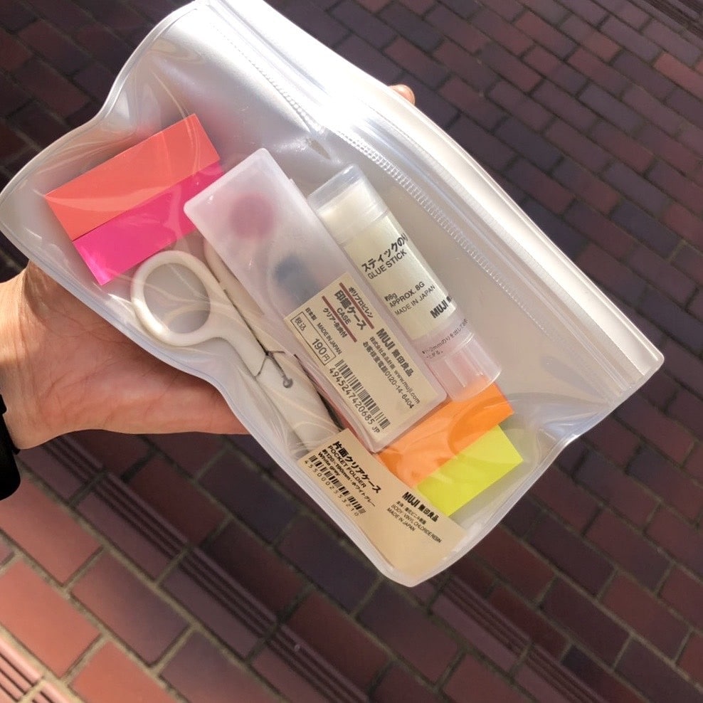 付箋や、はさみ、のりなど、細かい文具を入れての持ち運びが可能です。