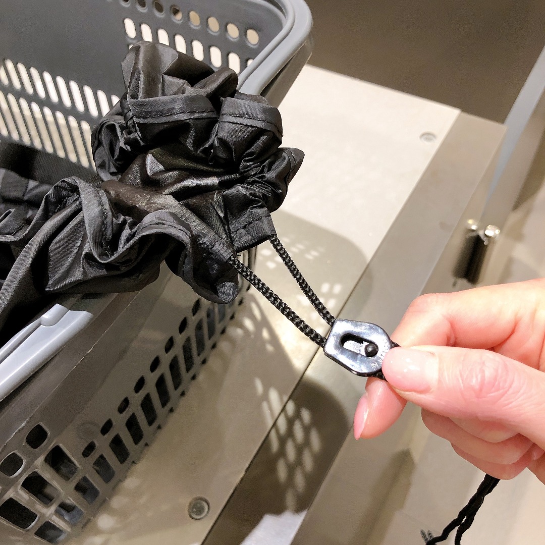 お会計が終わりましたら、そのままバッグの紐を絞るだけで、マイバッグとしてお持ち帰りいただけます。