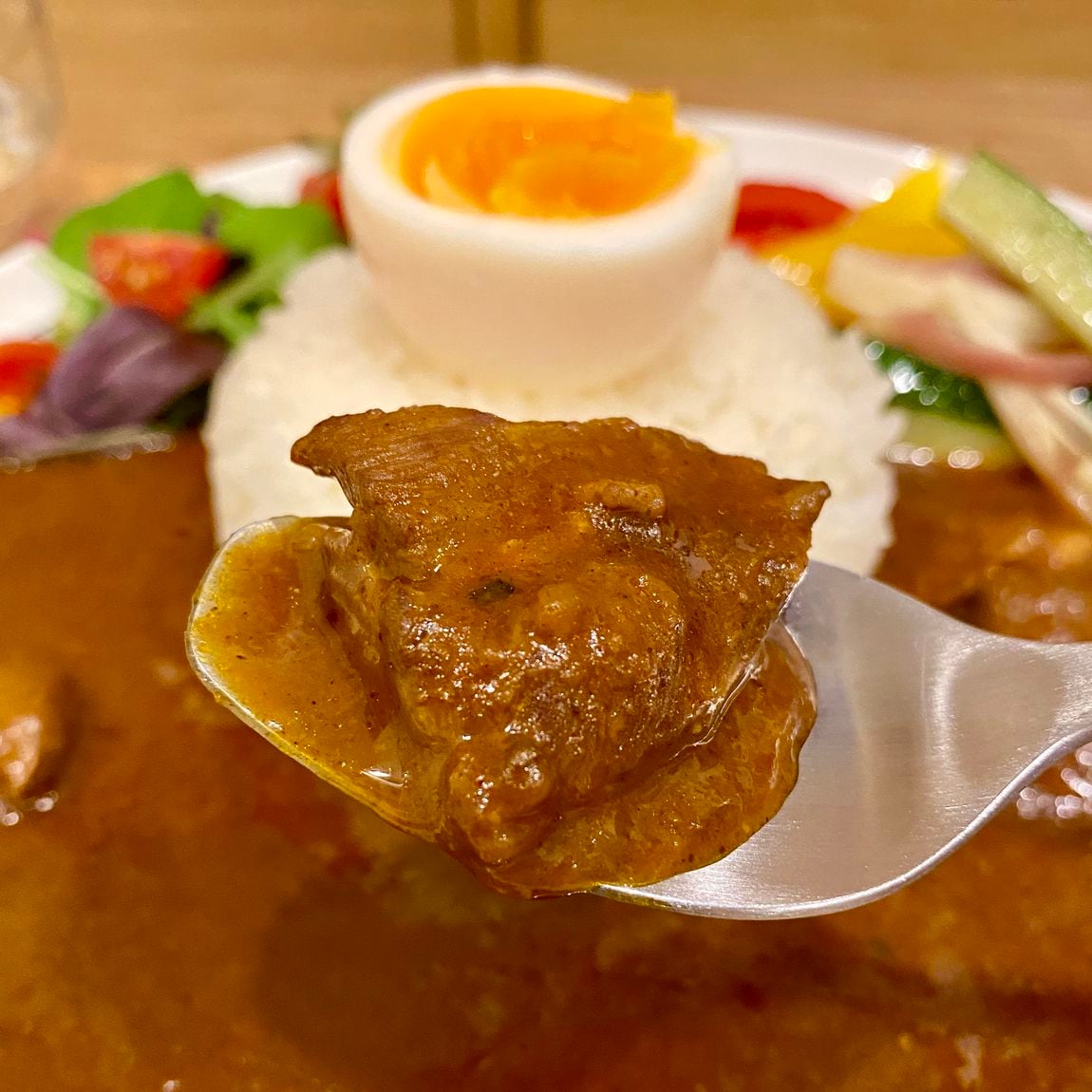 ルーはスパイシーな中にも甘味と深みがあってごはんと相性抜群。