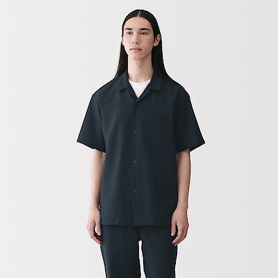 商品名:風を通すストレッチサッカー オープンカラー半袖シャツ
