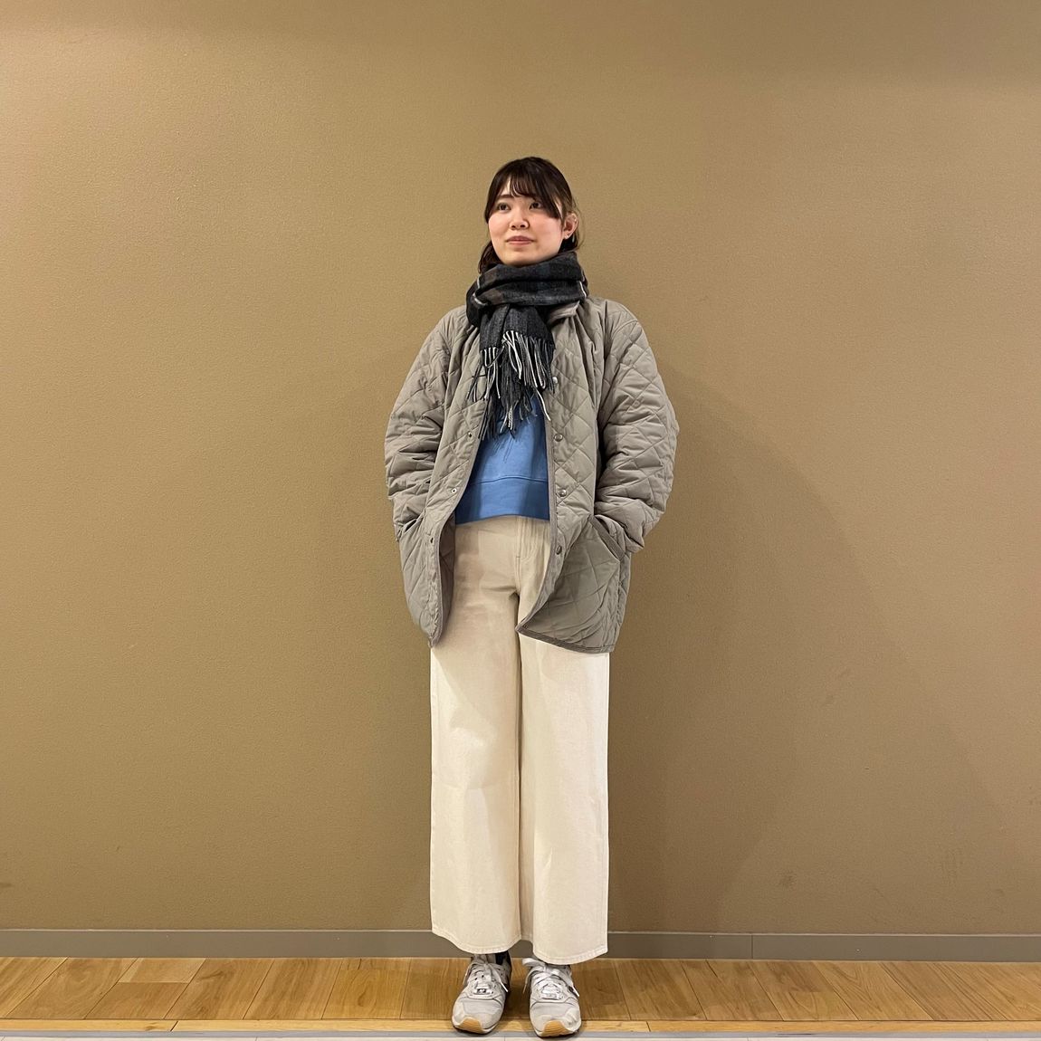 新商品のデニムワイドバギーパンツを使用したコーディネートです。