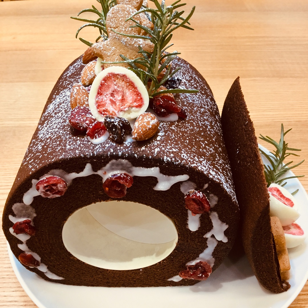 バウムの特徴である年輪の様な輪っか模様を活かして、まるでブッシュドノエルの様な仕上がりです♪