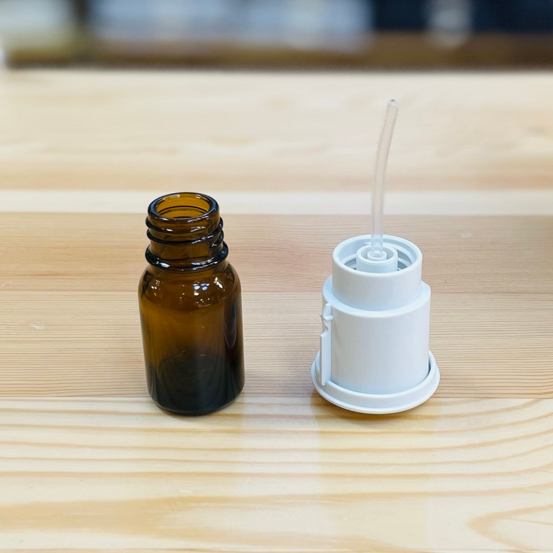 メンテナンス用のボトルが付属しておりますので、ノズルを取り外してお好きなアロマオイルを取り付けます。