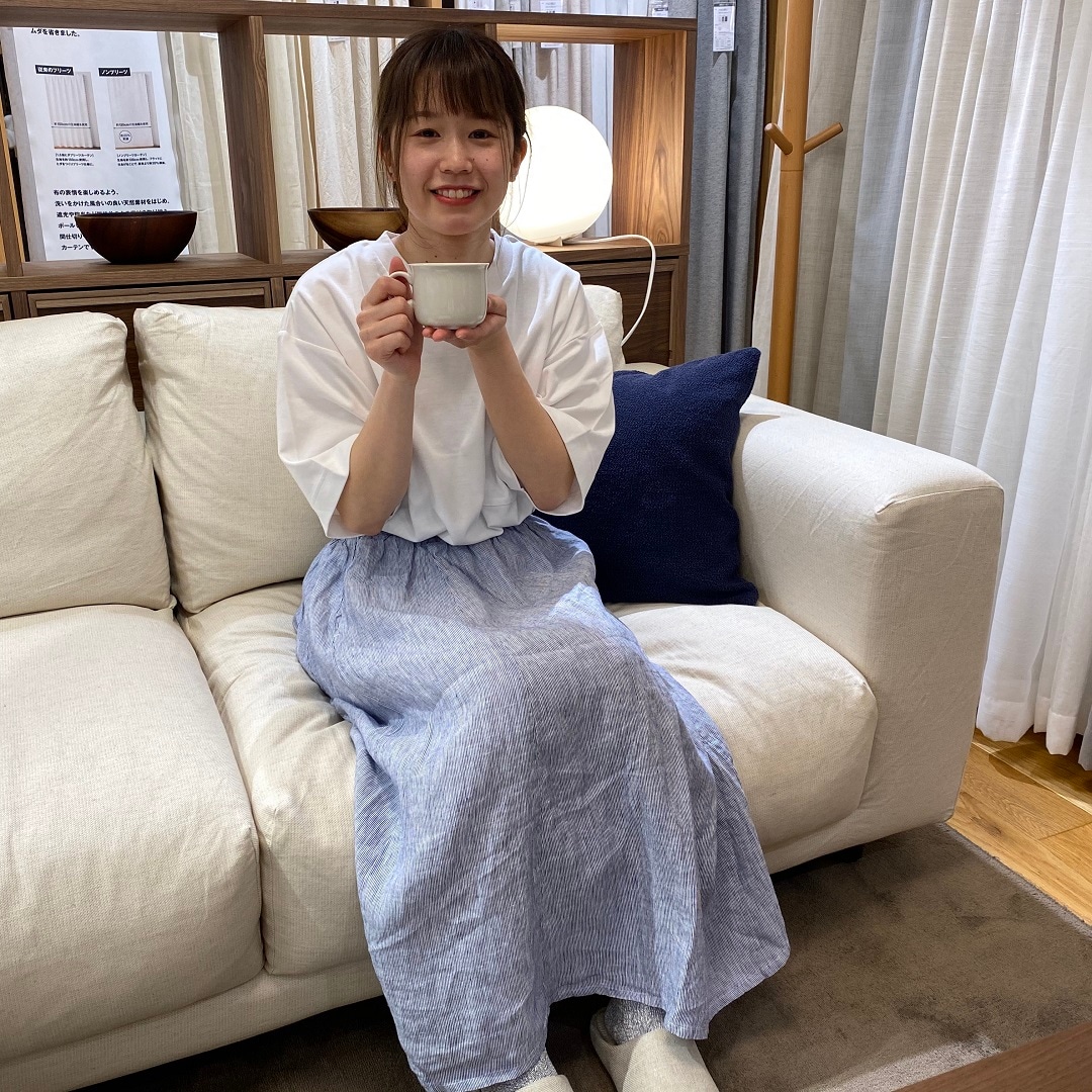 〇スカート:フレンチリネン ギャザースカート/ネイビー×ストライプ