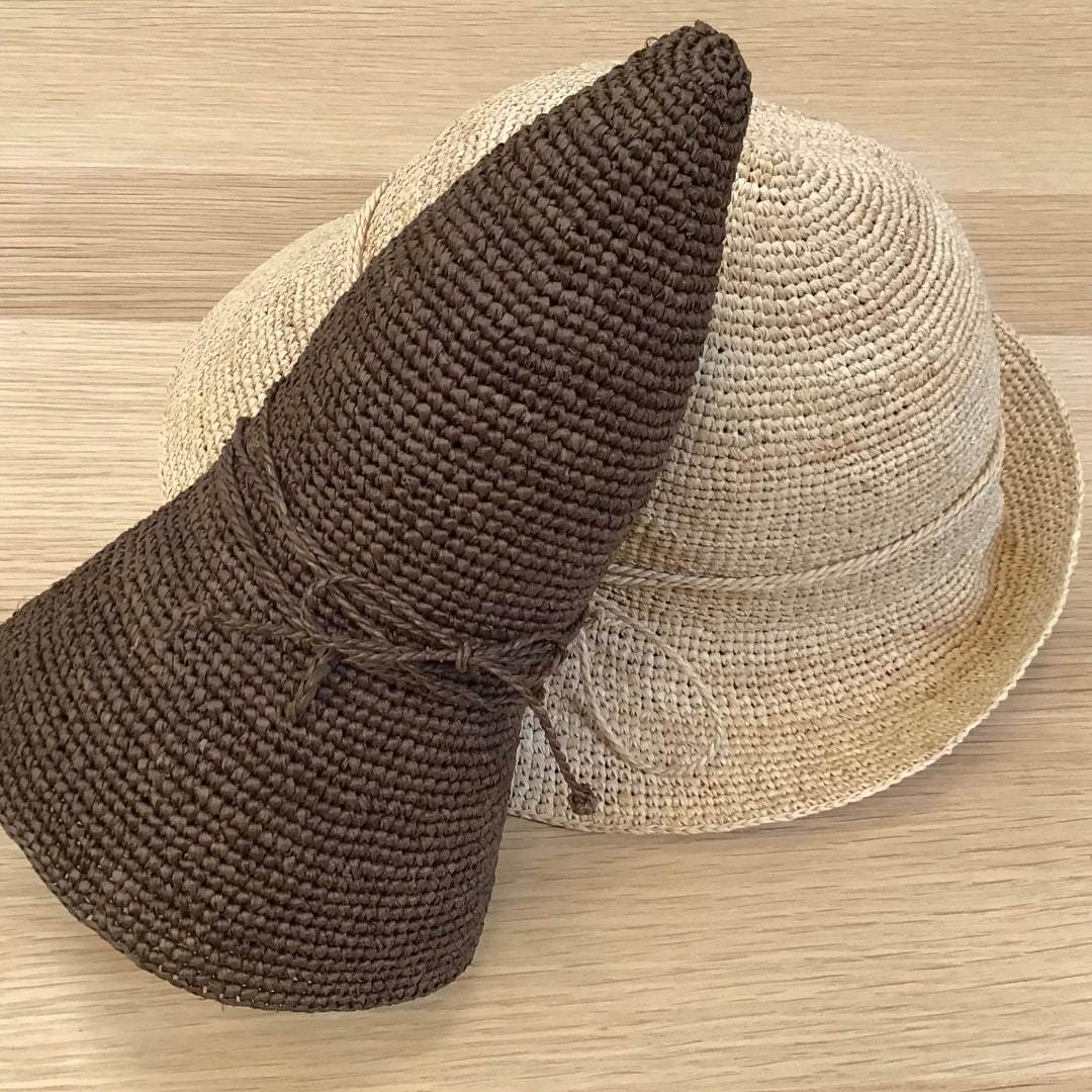 こちらのラフィアキャペリン、つば広帽子は実は紫外線遮蔽率90%以上。