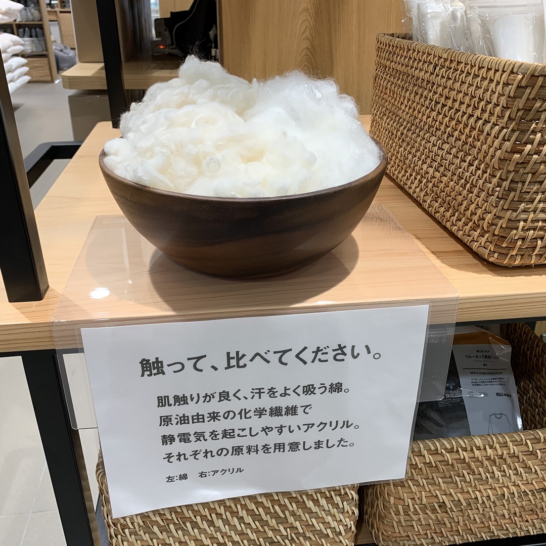 ぜひ触ってみて、綿とアクリルの肌触りを比べてみてください。