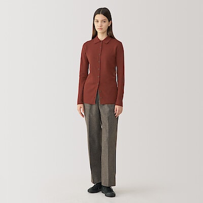 婦人 ダブルフェイスニットシャツ 婦人L・レンガ