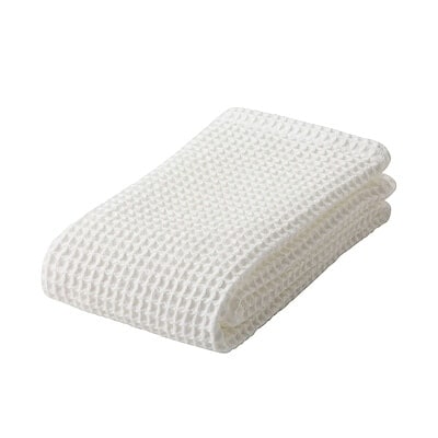 無印良品のタオルは薄手、中厚手、厚手、ワッフルと4種類の生地とフェイスタオル、スモールバスタオル、バスタオルの3種類の大きさに分けることができます。(厚手は11月上旬に発売を予定しています。)