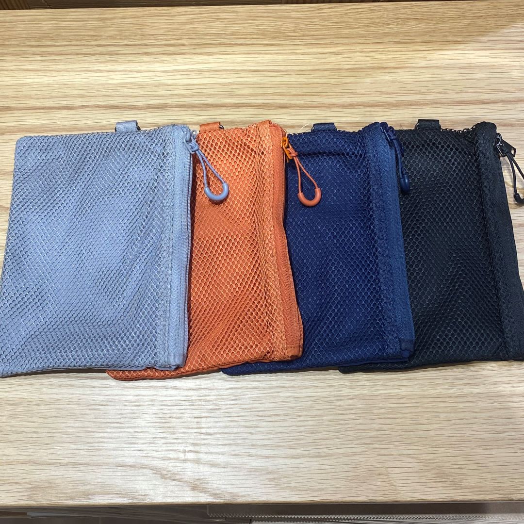 メッシュとポリエステルの両面使いできるから小物収納に最適で、4色ありS~L まで3サイズ揃っているので、仕分けしやすいのがポイントです。