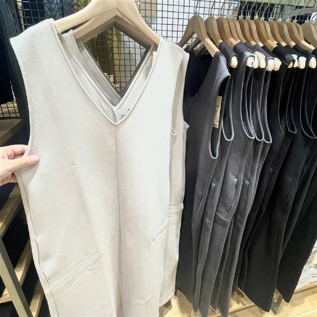 ノースリーブ、深めのVネックがポイントです。まだまだ暑いのでTシャツに合わせられますし、肌寒くなったらシャツや長袖シャツと合わせられます。このように長い期間着用することができるのです。