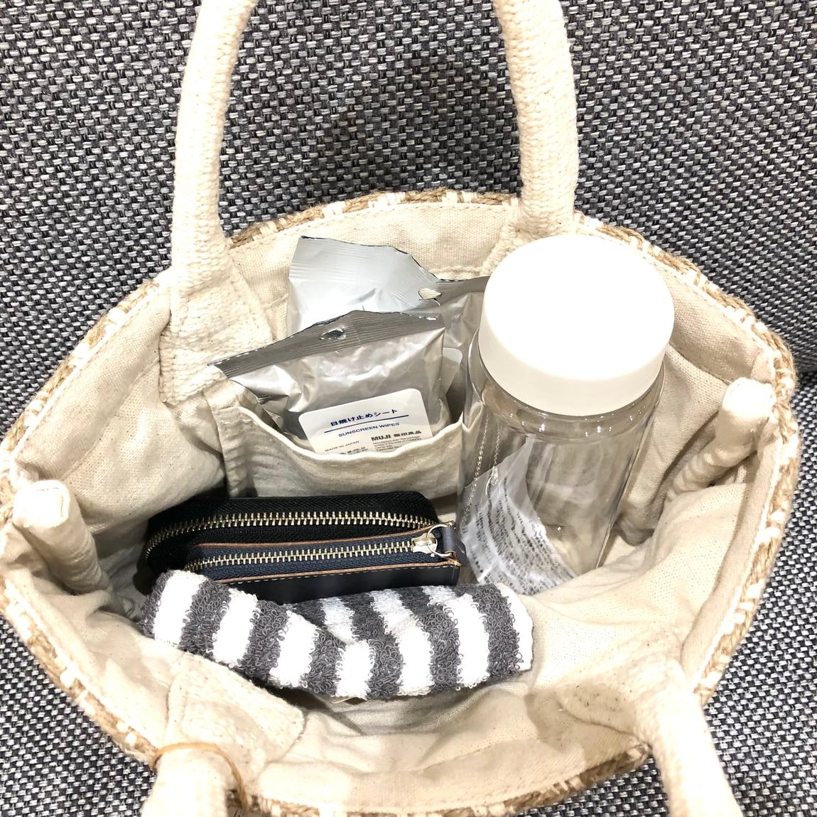 コンパクトな見た目ですがマチもあり内ポケットもあるのでミニ財布、キーケース、ハンカチ、ボトル、シート2つを入れてもまだ余裕があります。