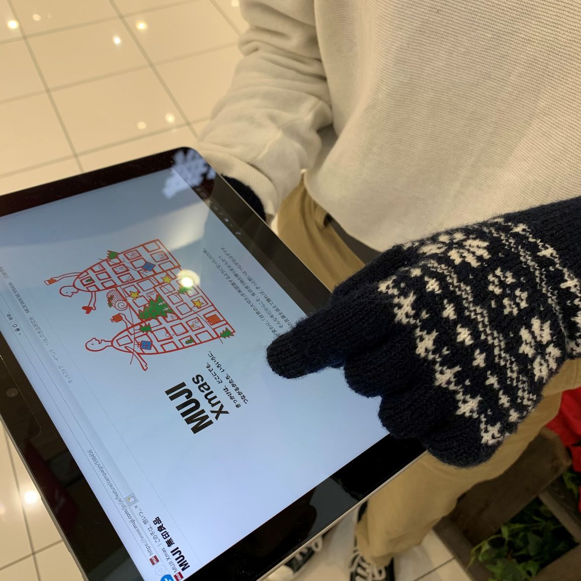さらにこの手袋、つけたままでタッチパネルの操作ができるんです!
