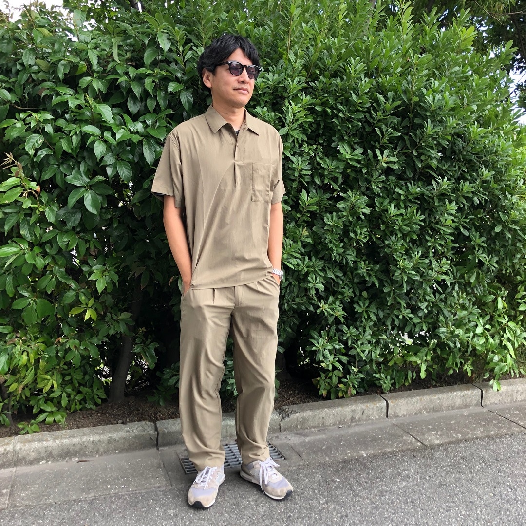 【風を通すストレッチ 半袖布帛ポロシャツ】