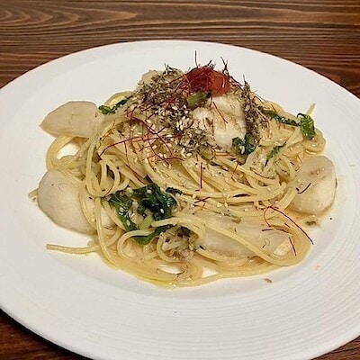 【ベイドリーム清水】 アレンジレシピ 季節野菜とさば昆布の梅スパゲッティ