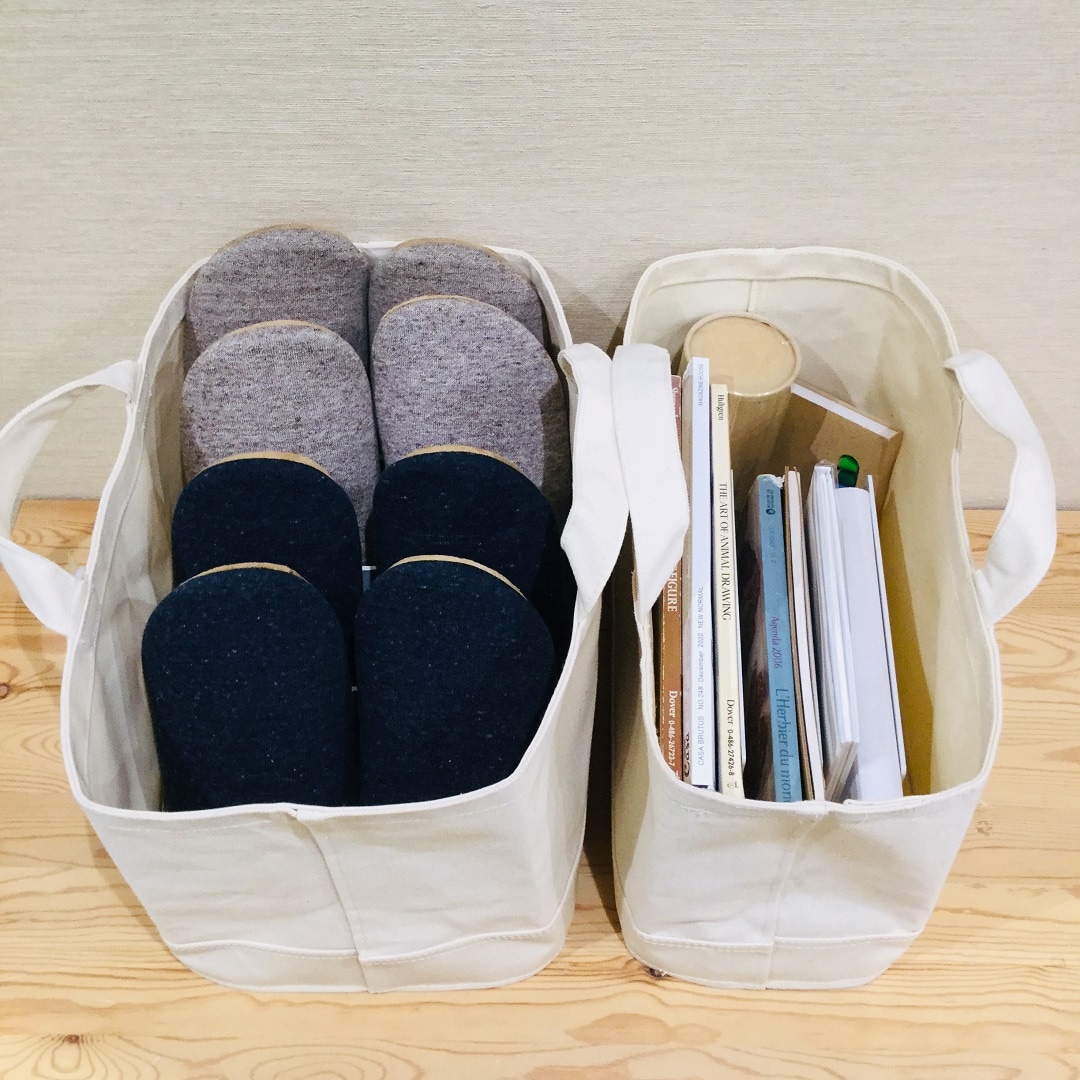 使い方は色々、例えば玄関先のスリッパ入れやリビングでの雑誌や本入れとしても使えます。