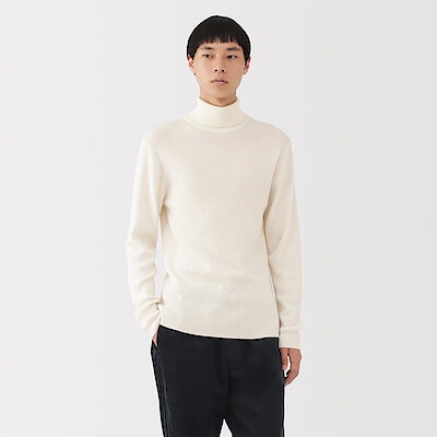 紳士 洗えるウールリブタートルネックセーター 紳士XS・オフ白