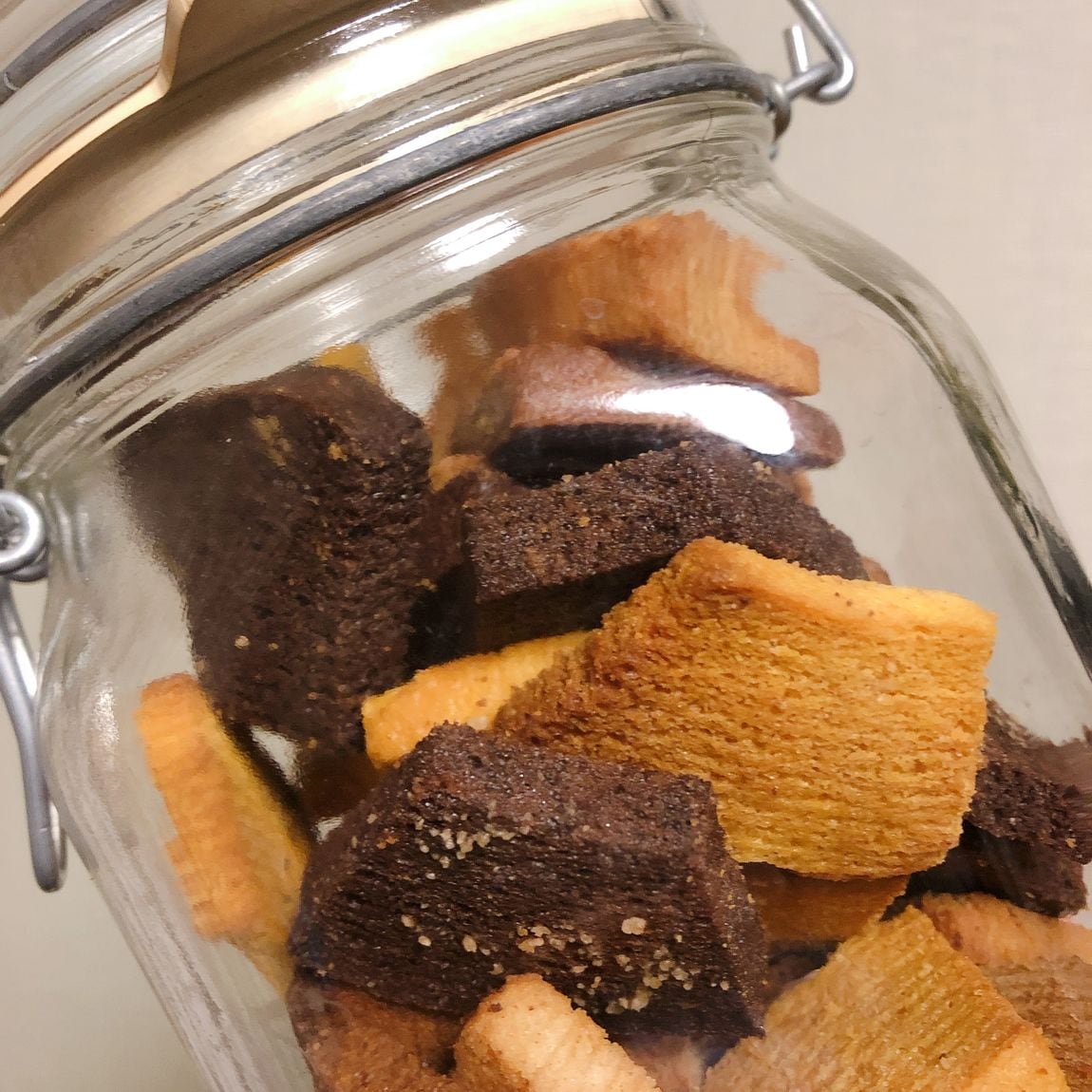 ラスクになったら、密閉ビンに入れて保存しておけば安心です。